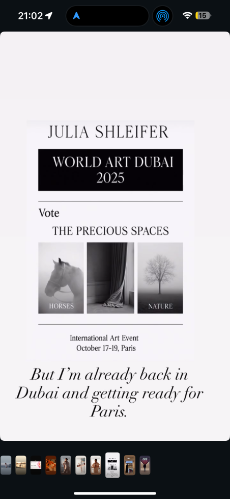 Julia Shleifer works actively not only in Dubai, which is her main creative base, but also successfully carries out projects in France, Italy, and London. While Dubai continues to inspire her daily and remains the heart of her artistic activity, her works can also be found in numerous interiors across France, Italy, and London. These spaces — from stylish private apartments to elegant public interiors — reflect her unique approach and refined sense of harmony, transforming every environment into an atmospheric and inspiring place.